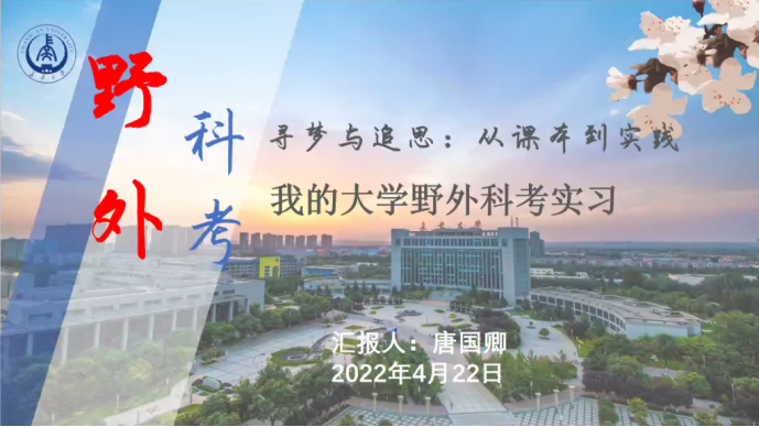 2018级本科生唐国卿同学,以“寻梦与追思:从课本到实践——我的大学野外科考实习”为题,通过图片、视频展示等形式为大家讲述了其在四川峨眉山、新疆天山和陕西太白山、秦岭等地的科考经历,带大家进一步感受了大自然的魅力和地球科学文化的博大精深。