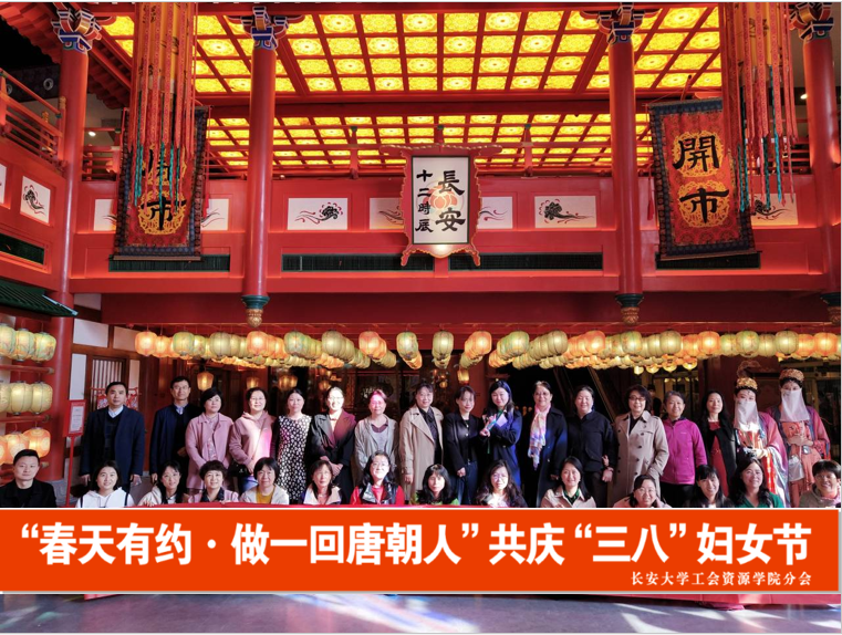 工会举办了“春天有约·做一回唐朝人”共庆“三八”妇女节活动,组织学院近30名女教工前往曲江大唐不夜城东侧曼蒂广场“长安十二时辰”,沉浸式体验“长安十二时辰”主题街区文化。学院分会主席薛冬钧、副主席林广春、文体福利委员左可胜和珠宝矿加系工会小组长李治杭作为工作人员一道参加了活动。