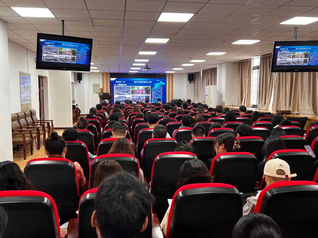 报告会上,田猛教授用了一个半小时,从介绍现代化相关概念入手,以历史脉络和全球视野,就中国式现代化的历史探索、本质特征、现实挑战、实现路径等方面予以了讲授和阐释。他指出,“现代化”一词起源于西方,通常指以农业为基础的低收入社会走向利用科学和技术的城市化和工业化社会的转变。率先完成工业革命的西方资本主义国家确立起对世界的统治,也垄断了“现代化”话语权。西方现代化标准是“私有制+自由市场+分权型现代化国家机构”,现代化应是全人类社会发展的一个过程,有基本的共性(经济工业化、政治民主化和民族独立化),但也有不同时空所限定的特性(经济市场化、宗教世俗化、人的现代化),从时间上来说不同阶段的现代化有不同的内涵,从空间上来说不同国家和地区的现代化有不同的特性。中国的现代化是在资本主义全球化的外部冲击下开始的,经历了大约180多年的时间,发端洋务运动,历经戊戌变法、辛亥革命、毛泽东时期、邓小平时期、新世纪初期、新时代等艰辛探索,终成正果。中国式现代化的本质是中国共产党领导的社会主义现代化,就是在政治建设中呈现坚持中国共产党领导,坚持中国特色社会主义道路,发展全过程人民民主的政治文明,具有人口规模巨大、全体人民共同富裕、物质文明和精神文明相协调、人与自然和谐共生、走和平发展道路等五个特点。在中国式现代化的现实挑战中,田猛教授指出,中国式现代化面临着中国当前经济增长速度下降、科技创新力不强、城乡区域收入分配差距仍然较大以及中国碳达峰和碳中和过程加快等四个方面挑战,并讲授应防范“黑天鹅”“灰犀牛”“大白鲨”等事件出现。针对中国式现代化实现路径,田猛教授结合党的二十大报告,明确了“四个坚持,一个统筹”,即坚持和加强党的全面领导,这是实现中国式现代化的政治保障;坚持建设现代化经济体系和构建新发展格局协同推进;坚持全面深化改革,推进国家治理体系和治理能力现代化;坚持全面从严治党,以党的自我革命引领社会革命;必须统筹好发展和安全,推进国家安全体系和能力现代化。