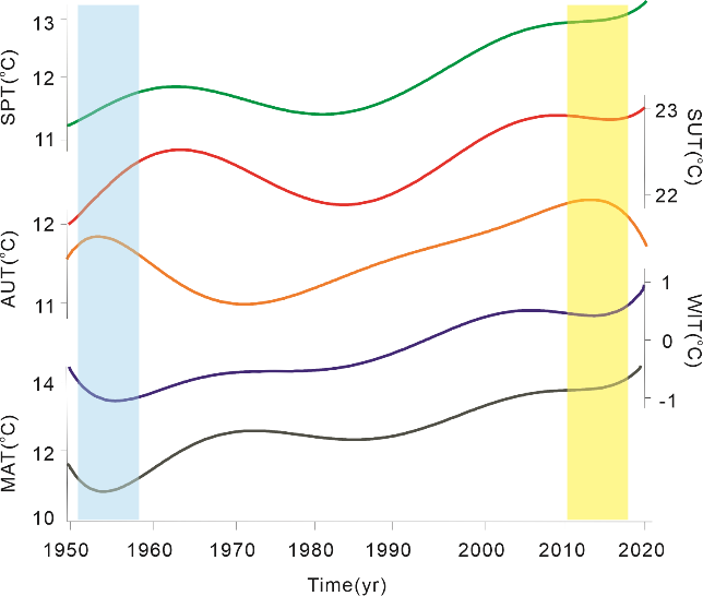 图2 1950-2020年温度变化 |