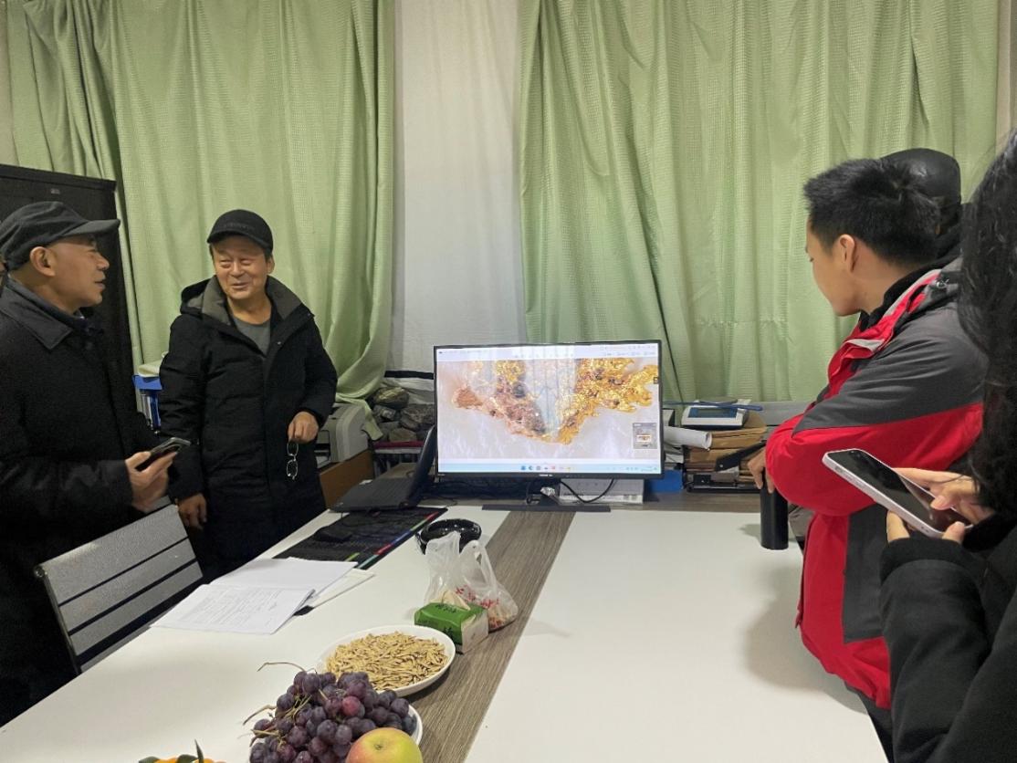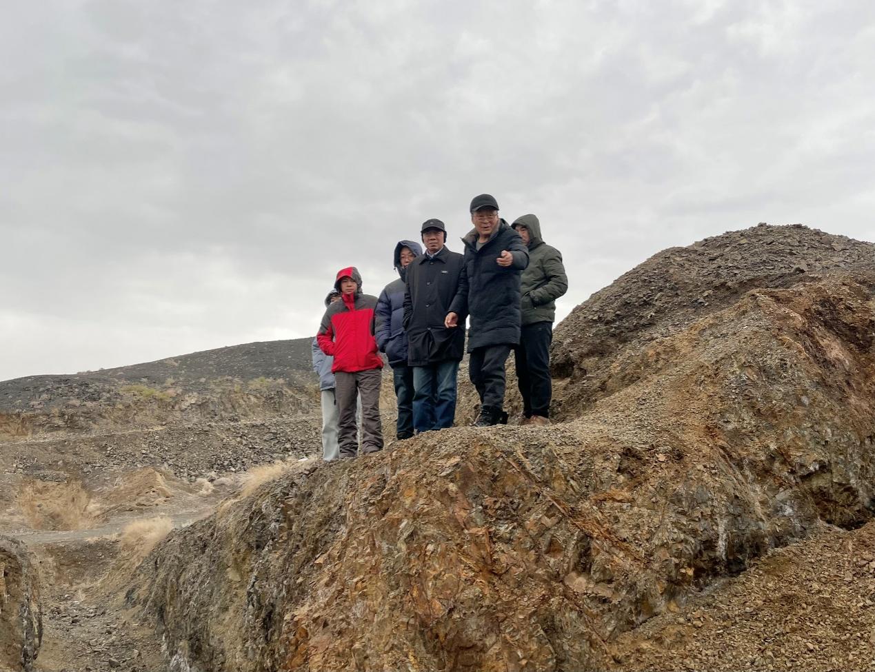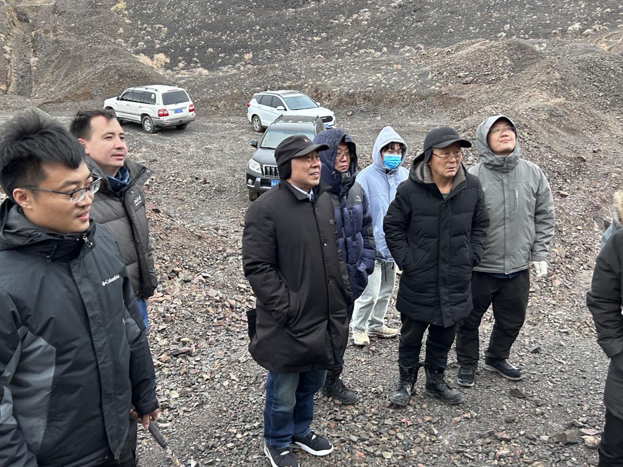 鸽子硐黄金开发有限责任公司总经理王辉对与会专家的到来表示热烈欢迎和衷心感谢。首先由王总简要介绍了西准噶尔地区金矿的勘查历史和进展,并分享了最新信息和认识,重点介绍了鸽子硐金矿探矿权的空间分布范围、区域地质、矿区地质、矿化带地质特征等,通过10余年持续的地质勘查工作,确定该矿为典型的“构造破碎蚀变岩型”金矿,特别是2023年对1∶1万地球化学岩屑测量所圈出的第Ⅲ重点勘查区的系统勘查工程控制,实现了西准噶尔金矿带金矿类型的重大突破。针对含颗粒地质样品采集、制样技术、分析测试方法和规范研究方面取得的创新和关键性突破,彻底解决了含颗粒金地质样品分析测试结果被大面积低估的世界性难题。随后,专家们顶着大风、冒着严寒对探矿权区进行了两天的野外现场考察和研讨,共识矿化类型属于陈衍景教授1991年呼吁重视的“构造蚀变岩型”。