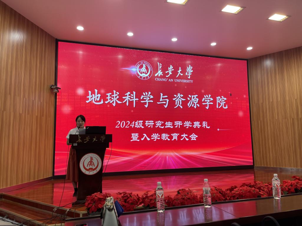院长温汉捷首先致辞。温院长代表学院全体136名教职工对新同学的到来表示诚挚的欢迎。他分别从学院发展、行业现状和学院建设等方面详细介绍,希望同学们珍惜科研学习机会、坚定理想信念、把握机遇挑战,并给同学们提出三点期望,一要坚定学习和发展地质的信心,树立专业自豪感 ,胸怀“ 国之大者 ”,做新时代的地质人;二要弘扬脚踏实地,力学笃行的作风,揭宇宙之奥秘,探地球之宝藏;最后要秉承持之以恒,孜孜不倦的态度,做学问要发扬“钉钉子”精