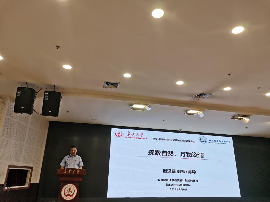 大家庭表示欢迎。他以“探索自然、万物资源”为题,重点介绍了院校发展历程、专业特色、师资力量、人才培养、学生就业等内容。他希望全体新生能够珍惜大学时光,脚踏实地,积极进取,勇攀科学高峰。