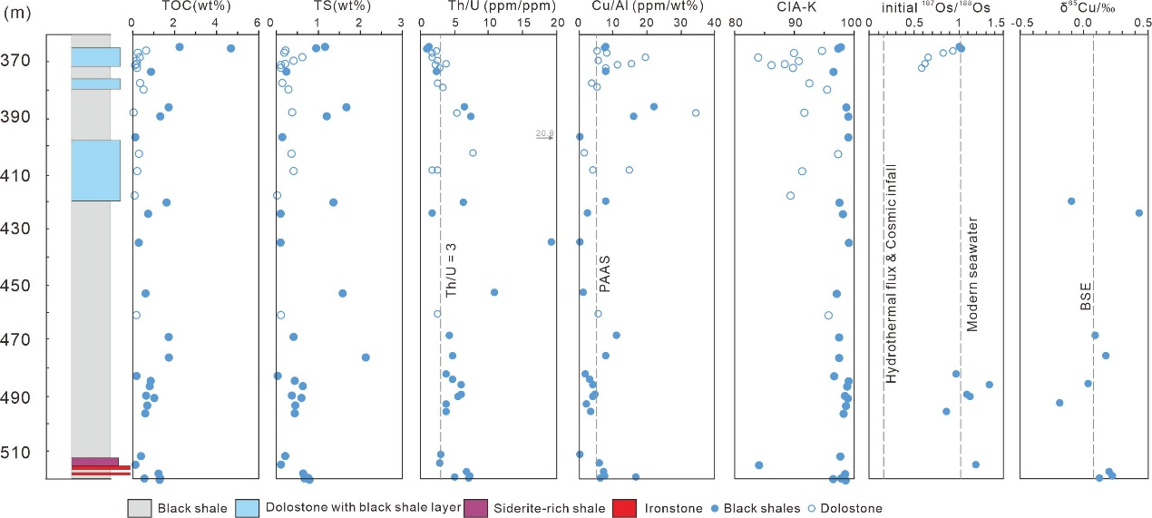 杨秀清教授、中国地质科学院矿产资源研究所毛景文院士及其国内外合作者对我国华北克拉通串岭沟组中黑色页岩和白云岩开展了元素、Re-Os和Cu同位素组成研究,取得了如下重要认识: