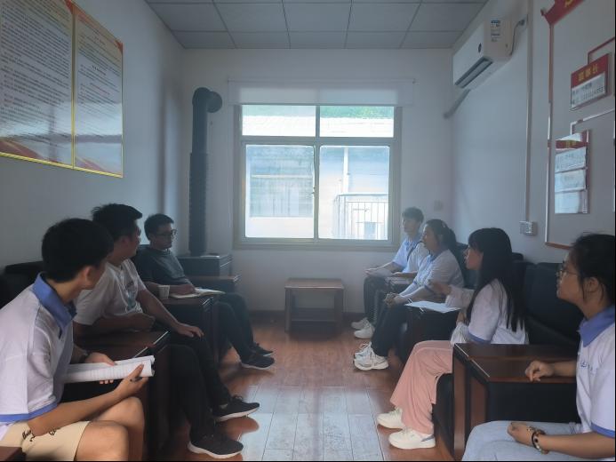 随后,在程镇的介绍下,实践团队先后了解了十里坪镇的地理位置、特色产业,学习了十里坪镇关于实施乡村振兴战略的具体举措:在产业振兴方面围绕十里坪镇的产业发展和就业扶持进行详细说明;在生态振兴方面,施行生态公益林管护、“林长制”管理,实现生态价值转换;在文化振兴方面,丰富十里坪镇居民文化生活,评选十里坪镇道德风尚人物,树立乡村文明榜样力量;组织振兴方面,坚强基层堡垒,进一步加强党建组织工作和政治工作,带动乡村发展;人才振兴方面,推动强化乡村人才振兴政策的系统集成,建立健全乡村人才培养、引进、管理、使用、流动、激励等一整套系统完备的政策体系,强化乡村振兴的政策保障。之后,程镇为实践团队简单介绍每个调研地的基本情况以及相关产业的发展状况,帮助团队成员在后续做出调整和进一步安排。