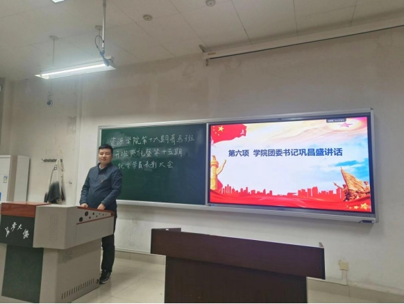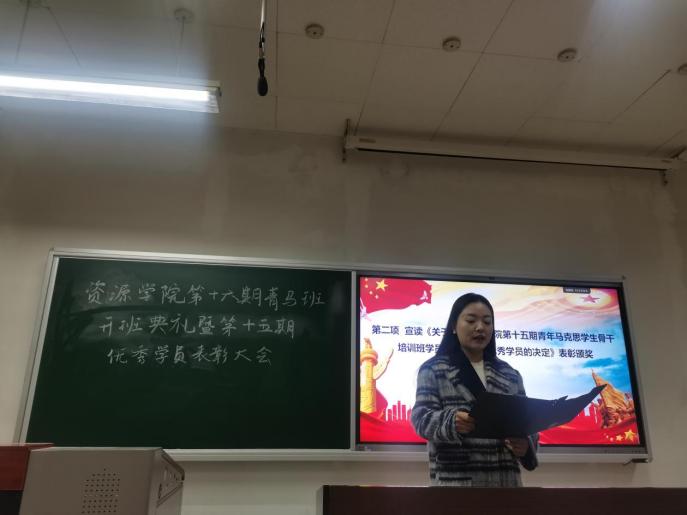第十五期青年马克思学生骨干培训班学员结业暨表彰优秀学员的决定》,院团委书记巩昌盛老师为十五期优秀学员颁奖。