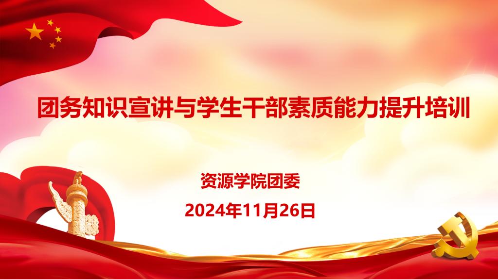 团委在北校区朝晖园学生社区党员活动室举行团务知识宣讲与学生干部素质能力提升培训,由学院团委书记巩昌盛主讲,学院2023级和2024级学生干部参加。
