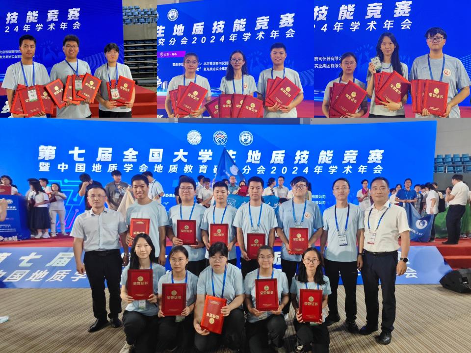 在本届赛事中荣获团体特等奖,在连续三届赛事中获团体特等奖。三支参赛队伍参与本“地质技能综合应用”、“野外地质技能”、“地质标本鉴定”、“地学知识竞赛”四个项目,共斩获2项特等奖,5项一等奖,2项二等奖。