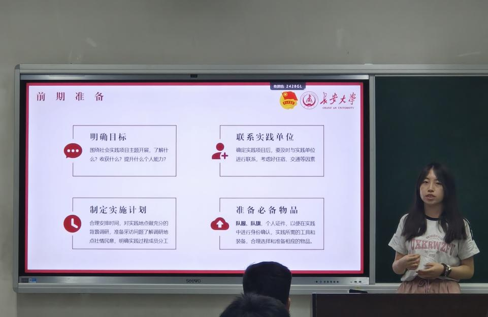 在经验分享环节,翟小丽分享了自己参加社会实践的经验和感悟。她从不同角度介绍了社会实践的收获和体会,包括立项申报、前期准备、实践过程、成果转化等方面。她的分享不仅让同学们对暑期社会实践有了更深入的了解,也为大家提供了宝贵的参考和借鉴。