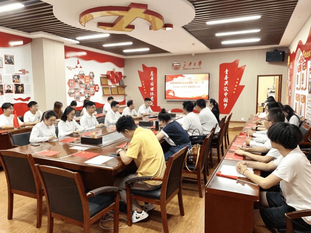 首先,学院党委书记黄喜峰和组织委员黎皛为新发展学生党员佩戴了党员徽章;学院党委书记黄喜峰带领全体党员面向党旗庄重宣誓。